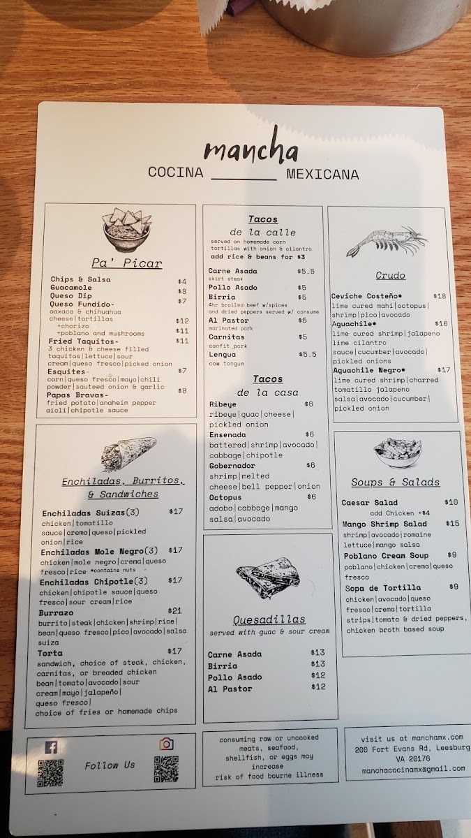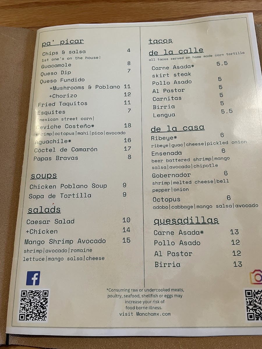 Mancha Cocina Mexicana offers a thoughtfully crafted menu that balances classic Mexican flavors with casual comfort. Whether you're stopping by for a relaxed lunch, an early evening bite, or a cozy dinner, you’ll find a range of dishes that feel both familiar and inviting.